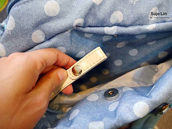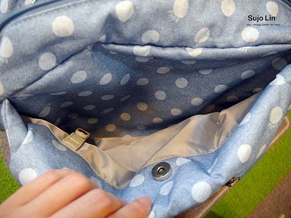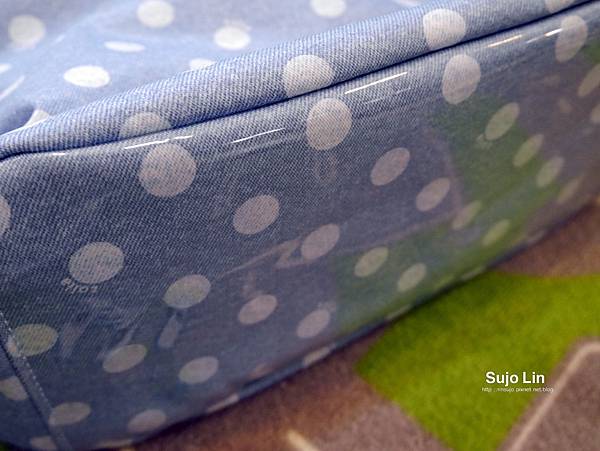 青春可愛的波卡圓點越看越喜歡,波卡圓點使用的布料摸起來很像真正的丹寧布,非常細緻,圓點裏還藏著Zoila字樣,讓圓點多了變化,值得一提的是,Zoila使用的布料是在台灣以符合歐盟REACH標準印製,環保無毒,媽媽包雖然是媽媽在揹,孩子也每天都會接觸到它,從這點來看,Zoila非常用心。