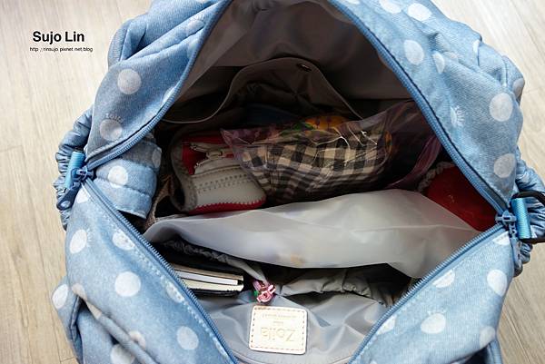 Zoila的經典花色,我怎麼能不入手呢?輕裝版附有防塵袋、保證卡、長背帶及透明收納袋,我對透明收納袋依舊沒有興趣,轉送給其他需要的媽媽,我覺得可以隨時更換的透明夾鍊袋更適合需要分裝各種用品的媽媽們。