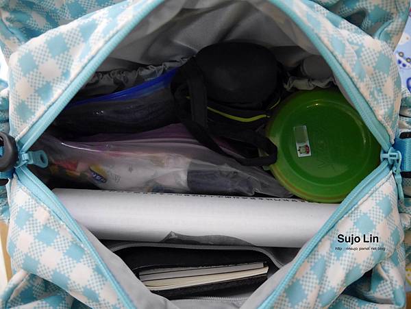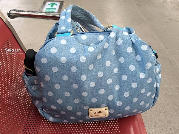 它不只是媽媽包,也可以是陪著媽媽浪跡天涯的隨身好包,我帶著它登機,裏面裝了很多個人用品跟外套,飛機起飛時,它靜靜躺在我的座位下,我不時低頭看著它,想著我跟它還有小湯一起走過的各個地方,思念我的孩子。