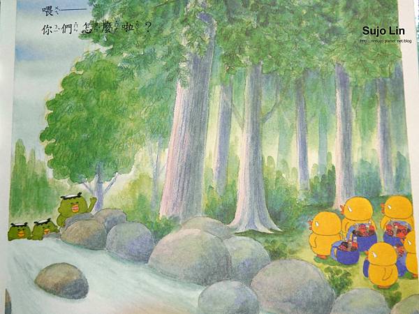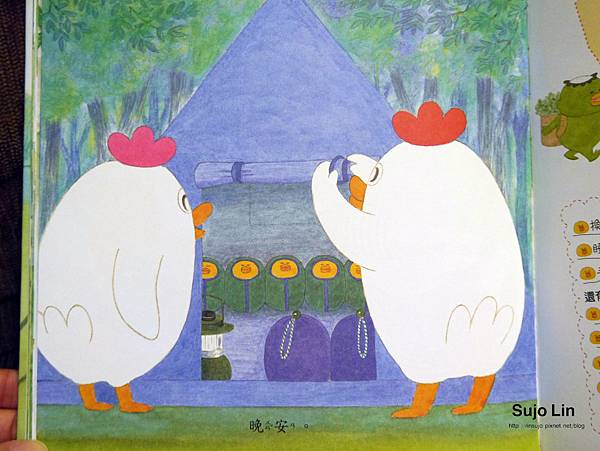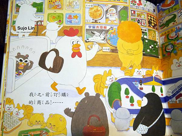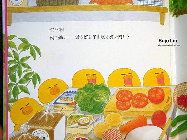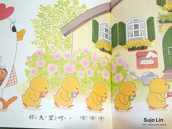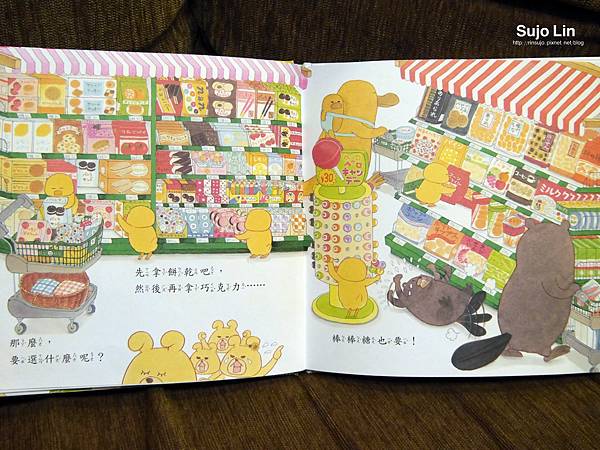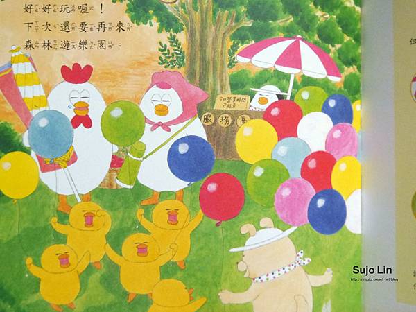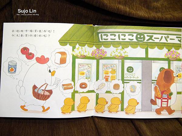 逗趣可愛又迷糊的小雞跟難纏小鬼頭小湯意外地合拍,互相陪伴滿一年了,小雞們似乎沒有要出新作,小湯依舊不離不棄守著朋友們,媽媽唸到都會背了卻還是認真陪讀,除了內容貼近生活,作者在書中藏的各種巧思非常適合和孩子們玩遊戲,例如逛超市時,我會問小湯小雞喜歡的東西擺在哪裏?多少錢呢?馬麻買的東西好吃還是小雞買的好吃?小湯會認真和我在超市玩尋寶遊戲,像這樣利用書中的各種場景,搬移到現實生活中,意外地,能延伸出各種有趣的生活情趣,難怪小雞們已經入住很多家庭當孩子們的好朋友。