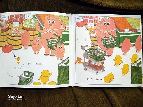 超市裏,小雞趁媽媽和別人聊天時,玩起了捉迷藏,找一找,小雞躲在哪裏呢?小湯剛開始會因為找不到小雞而崩潰大哭(有這麼難找嗎?),現在是迅速找到小雞後跟我說:「12345,好了,下一頁!」媽媽不知該哭該笑,可以有點耐心嗎?