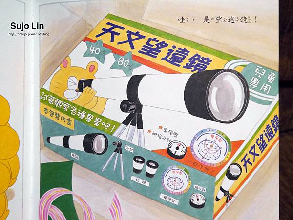最大的驚喜是爸爸買的天文望遠鏡!這真是學齡兒童最想收到的禮物之一,可以在家夜觀星象,聽著各種星座傳說,我小時候也想收到一個呢!