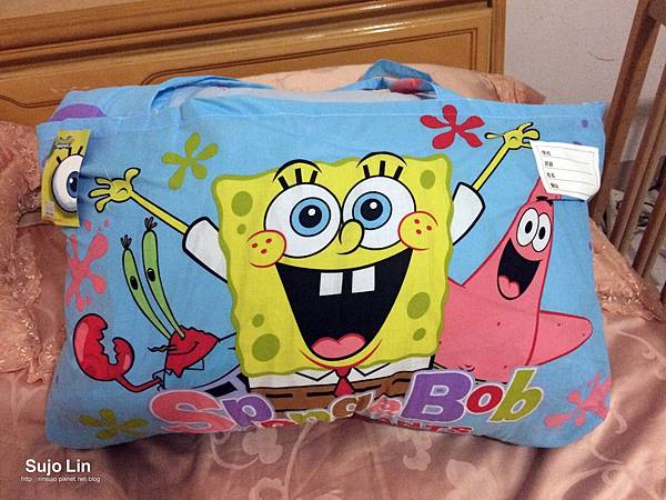 至於睡袋,小湯滿月時我收到一個海棉寶寶的睡袋,當時還覺得不合自己的審美標準想送人,沒想到現在派上用場,反正小湯也看不懂花樣,帶去學校舖在地上當床墊,再讓他蓋小被子,好收納又省錢。