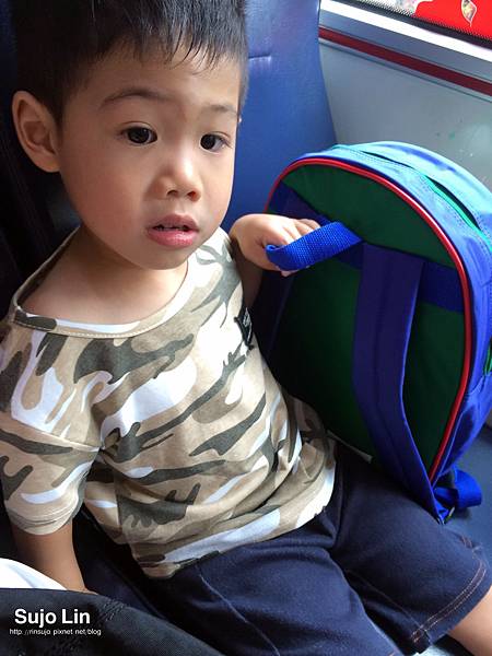 有些朋友為了安全考量不讓小朋友坐娃娃車,但要外婆風雨無阻地接送還要幫忙拿睡袋等用品,也太難為她了,我相信學校會有適當的安排,於是讓小湯加入娃娃車通勤的行列,小湯本人很興奮,因為每天都可以坐車上學,比跟外婆坐公車有趣多了。