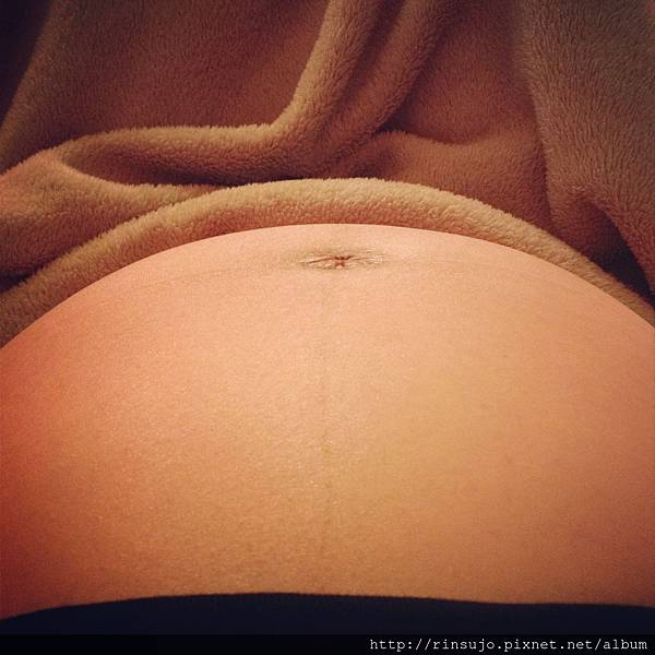 (35周的肚子,隱約的橫線,是孕婦高腰內褲的壓痕,我居然也穿阿嬤大內褲了)