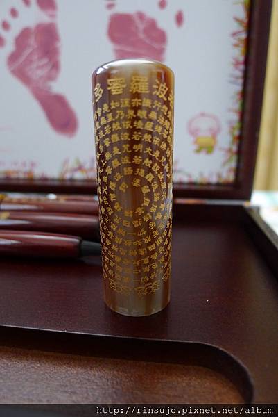 肚臍章,上面刻的是心經,還有別的圖案可以選,只是長輩比較喜歡這種的