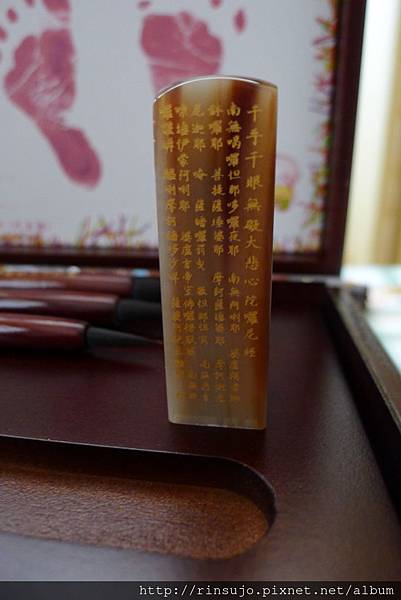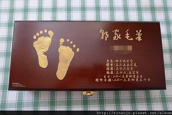 我們選的是普通的木盒,上面那個腳印是用剃頭當天小湯的腳印製作的