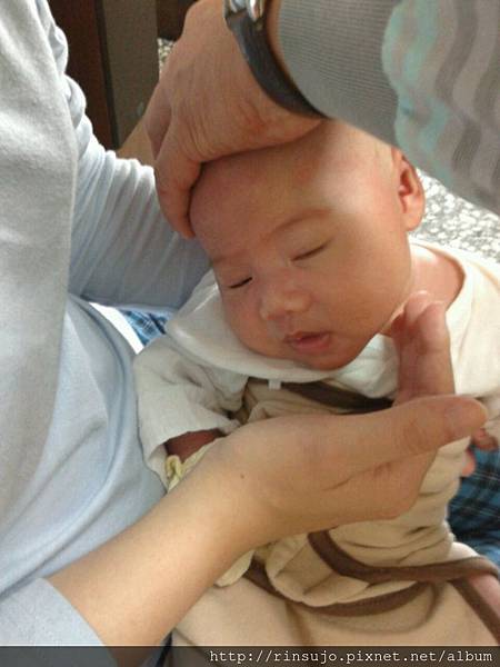 這小傢伙一開始眼睛一直看來看去,剃到一半就睡著了,連師傅幫他剃眉毛都沒醒