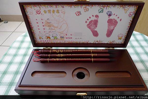 長輩們選了一組他們覺得價位合理、內容也滿意的組合,等了約1個半月,就收到胎毛筆