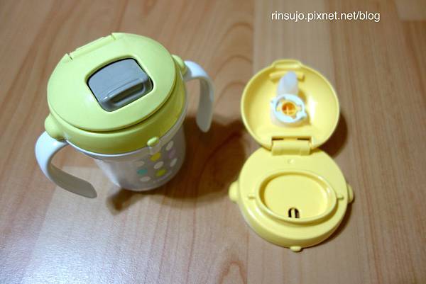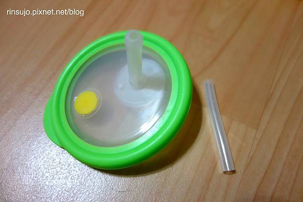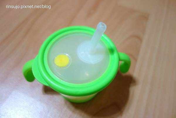 吸管訓練杯上有一個黃色的圓點,按下去,會有水從吸管跑出來,適合開始學用吸管的小孩,小湯雖然已經會吸了,我還是給他用這個杯子喝水,一方面可以強迫他多吸點水,沒有吞進去當做漱口也好,另一方面,這杯子很好洗清,在家用很方便。