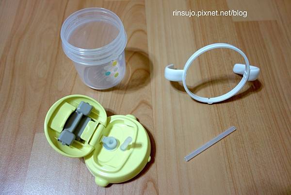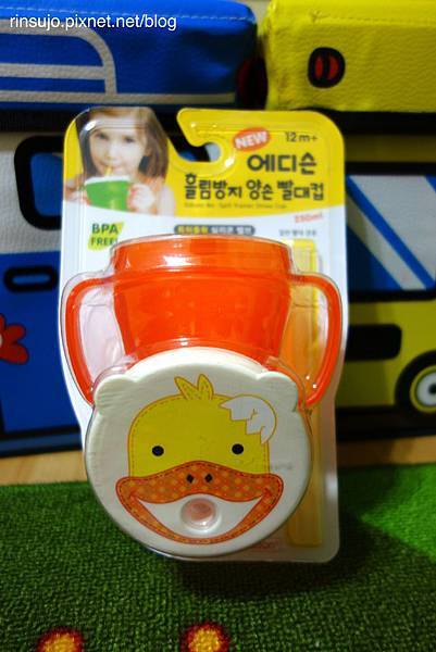 但插上吸管後就是另外一回事了,小湯喝完隨手亂丟的話,水會從吸管溢出來,我常常在擦地板跟裝水,而且帶出門不太方便,後來都是家裏用這個小鴨杯,外出用richell的點點杯。