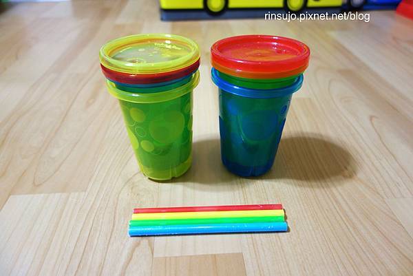 組合起來好繽紛,感覺裝水就很好喝了,常有媽媽說它是「防漏」吸管杯,其實它並不防漏,小孩隨手丟的話,水或飲料還是會從吸管流出來,這點要注意!
