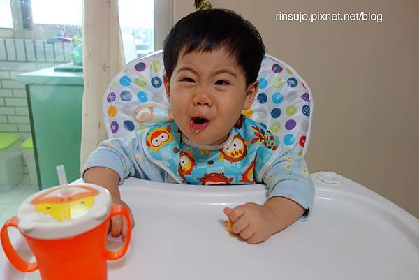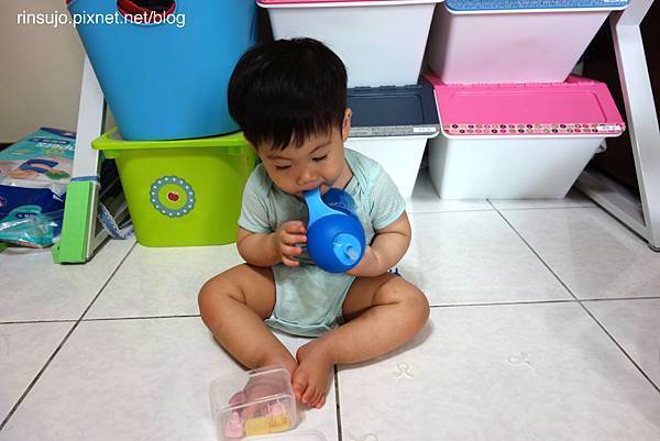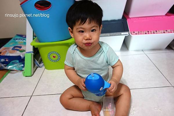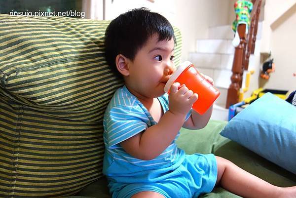 多試幾次後,可以喝幾口葡萄汁,之後再給他,他就不肯吸了,於是,給小湯喝水的計畫暫時停止,媽媽又開始找杯子,後來才發現,有的媽媽在小孩4個月的時候直接給吸管杯,小孩玩幾次就可以吸到水,我幹嘛費工夫買什麼鴨嘴杯浪費錢呢?