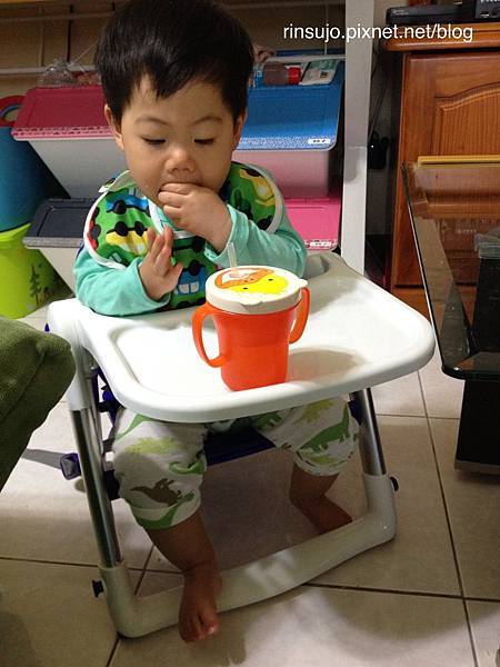 吃麵包時也開始會想喝水,幫他把水放餐桌上,他會主動去拿