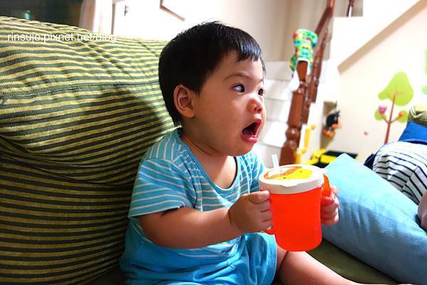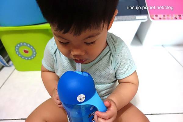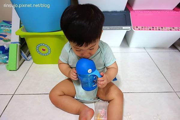 喝得多開心,不知道的人還以為裏面是什麼好料!這款水杯如果要防漏就不能插吸管,插吸管後,只要倒下來,水就會從吸管跑出來,所以,如果家裏的小孩習慣很好,喝完水後會好好放著,那很適合這個杯子,它的配件更少,洗起來更方便,我覺得它只適合家裏用,帶出門還要把水杯跟吸管分開,太麻煩了!有的媽媽是把它當成「戒奶瓶」的階段性水杯使用,等小湯準備好要戒奶瓶後,我再來試試。