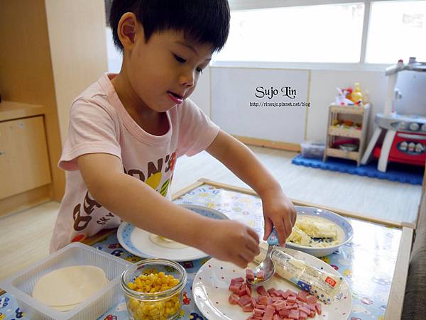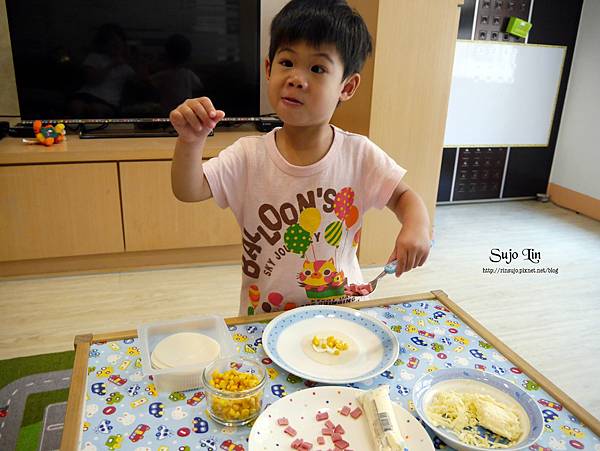 看他認真的臉跟熟練的動作,午餐就交給你囉,媽媽只要坐在旁邊口頭指導,難得輕鬆。