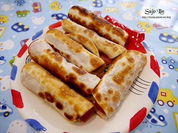 只要是「易熟」的食材都可以跟水餃皮捲在一起,我覺得飯捲最適合夏天食慾不振的小小孩,像吃點心般一口一口吃進營養的飯菜,不用在餐桌上聽小孩說:「妳煮得好奇怪!」「我不想吃這個耶!」這種讓人爆青筋的話,水餃皮真是媽媽的好幫手!