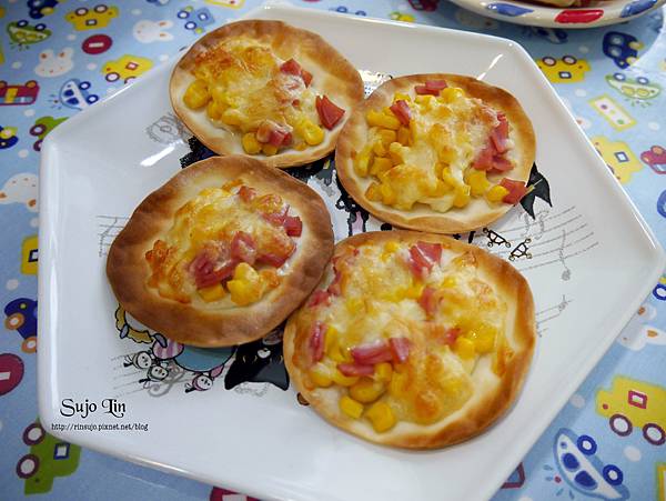 烤過的美乃滋有種特殊的甜味,我覺得用它當做基底會很受小朋友喜愛,上面的玉米跟火腿可以任意換成炒過的蔬菜之類的,小披薩就能變成營養午餐。