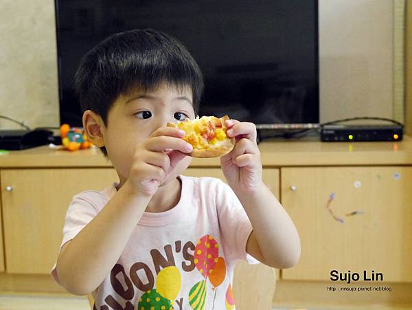 小湯吃得很陶醉,大概是覺得自己親手做的特別好吃,自己一個人掃光一盤,再喝杯牛奶就是他的午餐了。(我知道很偷懶,但夏天嘛,偶爾讓媽媽輕鬆一下)
